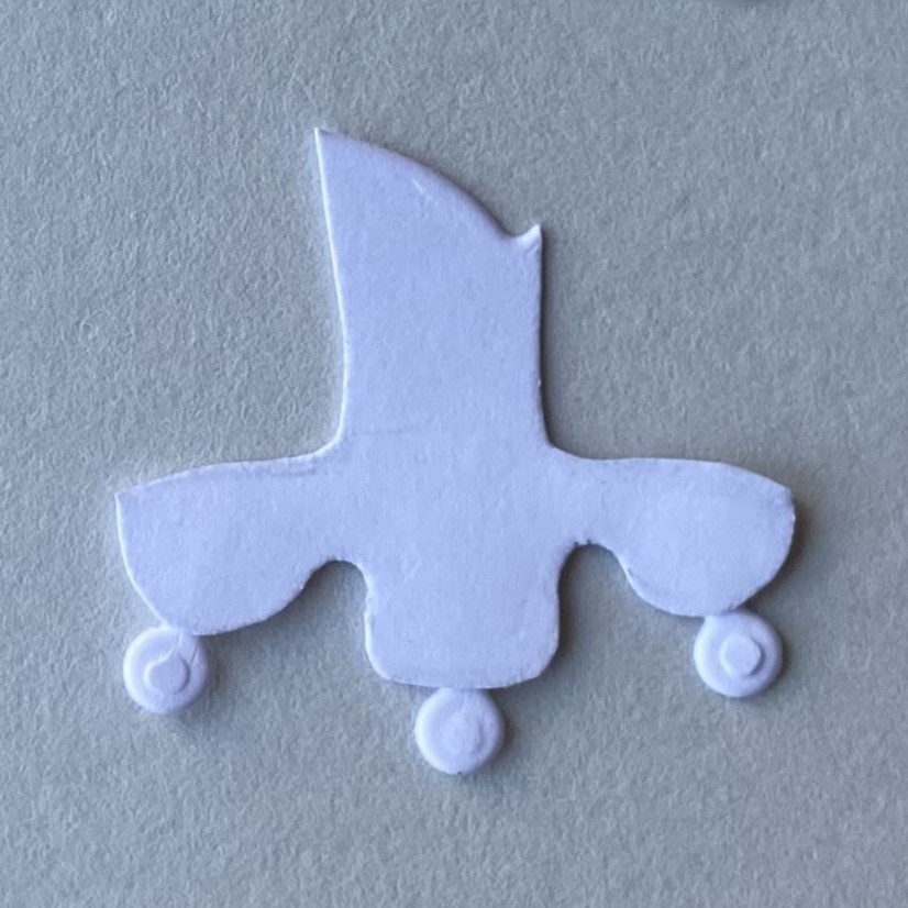 To create her signature collar, I sketched a design in pencil on the white collar die-cut, then fussy cut it out with scissors. I finished it off by gluing the tiny pom-pom balls from the die-cut to the back of the collar.